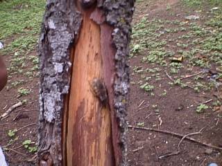 | ブラジルでのサシガメ探し | 木の幹の間にいたサシガメ |