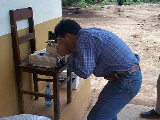 | ミルロフィラリアの流行地 | 調査地での検査風景 |