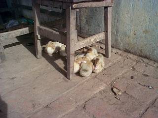 | アヒルのヒヨコのお昼寝 | 調査地へ向かう長〜い 直線未舗装道路 |